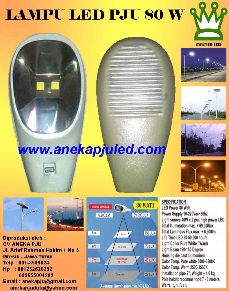 Dapatkan Spesifikasi Harga LAMPU PJU MASTER LED 80 WATT Produk Terbaik dari Aneka PJU jual lampu led PJU,lampu sorot led,lampu industri led,paket PJU led tenaga surya