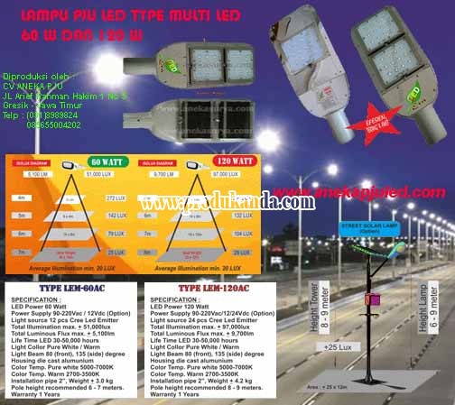 Dapatkan Spesifikasi Harga LAMPU PJU MULTILED 60 WATT Produk Terbaik dari Aneka PJU jual lampu led PJU,lampu sorot led,lampu industri led,paket PJU led tenaga surya