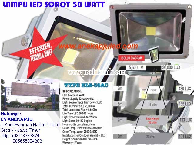 Umur lampu Led nya sangat panjang 50.000 jam dan bergaransi 1 tahun.