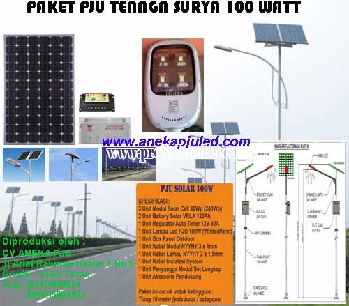 Paket ini menggunakan daya lampu 100 Watt jenis LED Merk Led Era Type LES-100DC lumen cahaya setara lampu konvensional daya 300 Watt dan sangat effesien sehingga sistem modul solar cell-battery solar bisa diperkecil kapasitasnya.